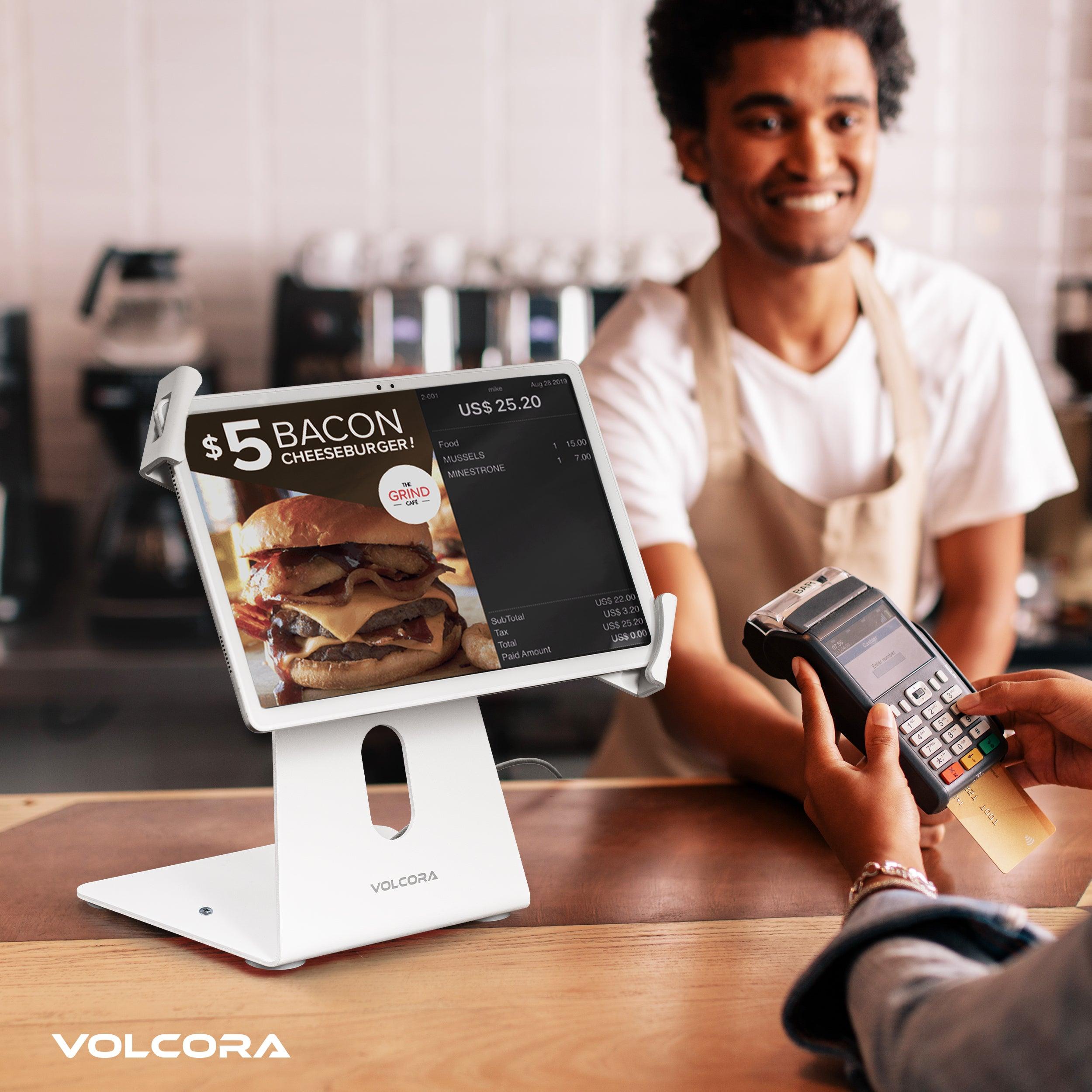PERFECT for RETAIL and CASHIERS: Our sturdy iPad kiosk stand holder is made for restaurants, retail, cashiers, small business owners, hotel/ event staff and home control stations. Recommend to use the holder iPad stand with our Volcora cash drawer box and POS products for easy integration and all in one combo.