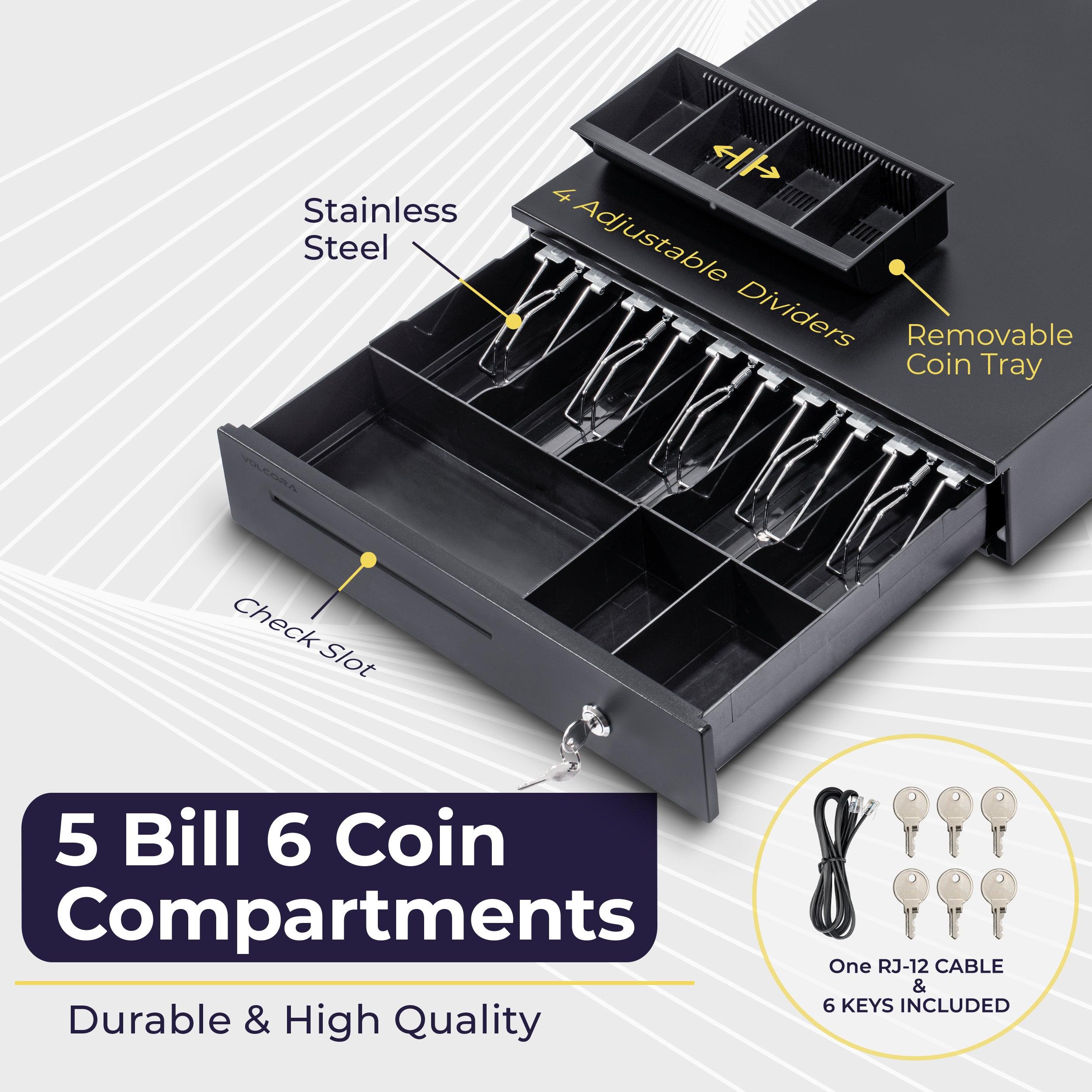 Type: 5 Bill / 6 Coin with removable coin compartment (not entire cash tray)