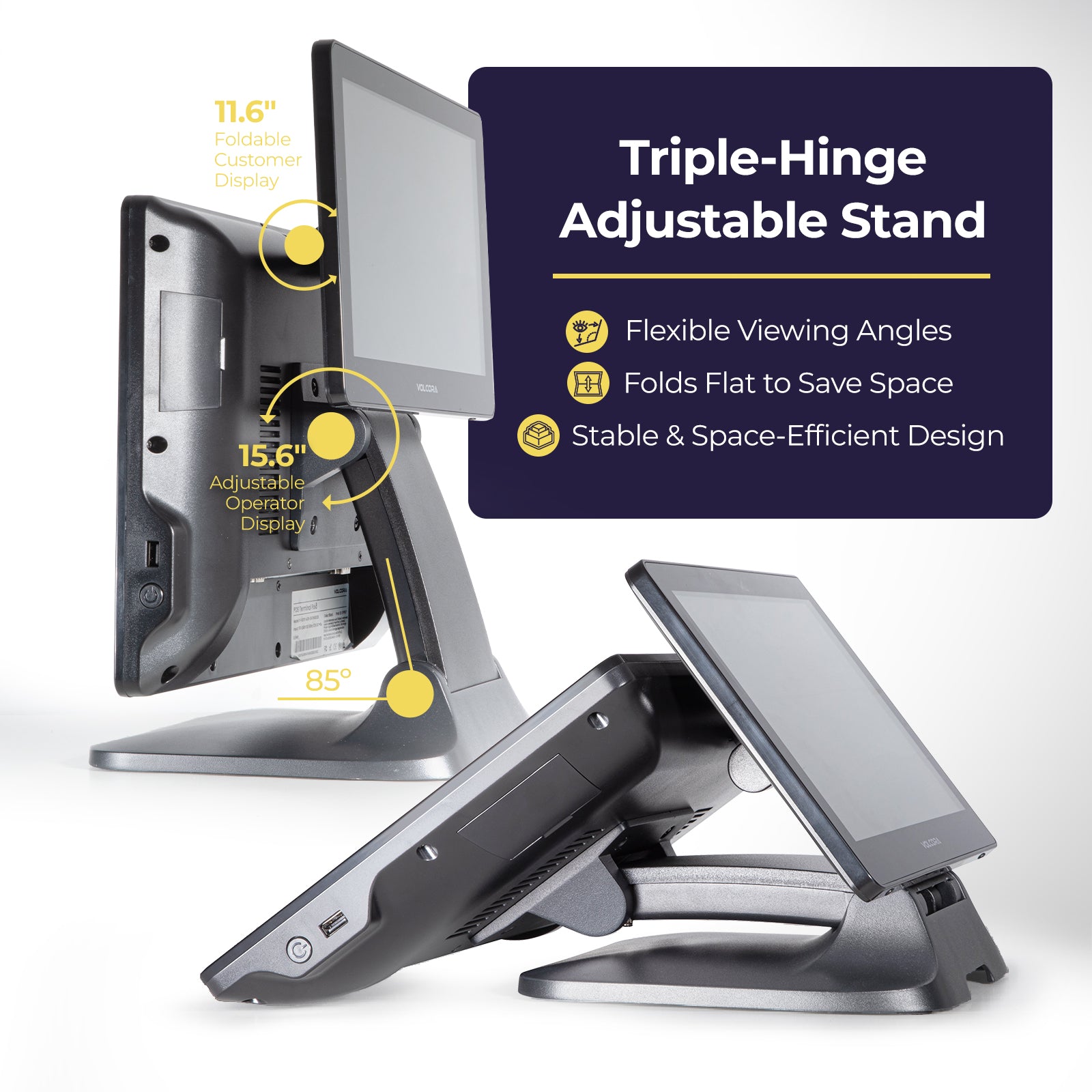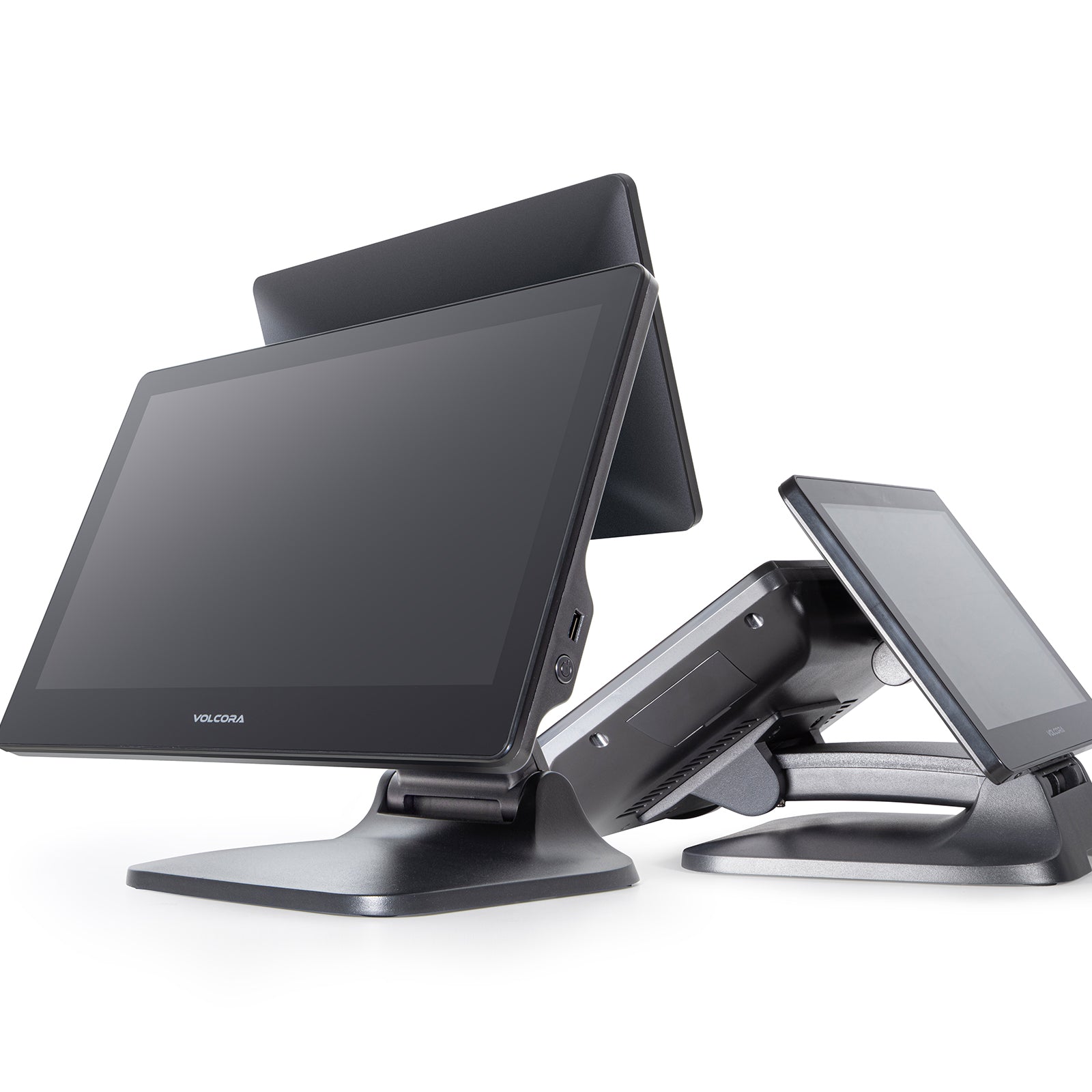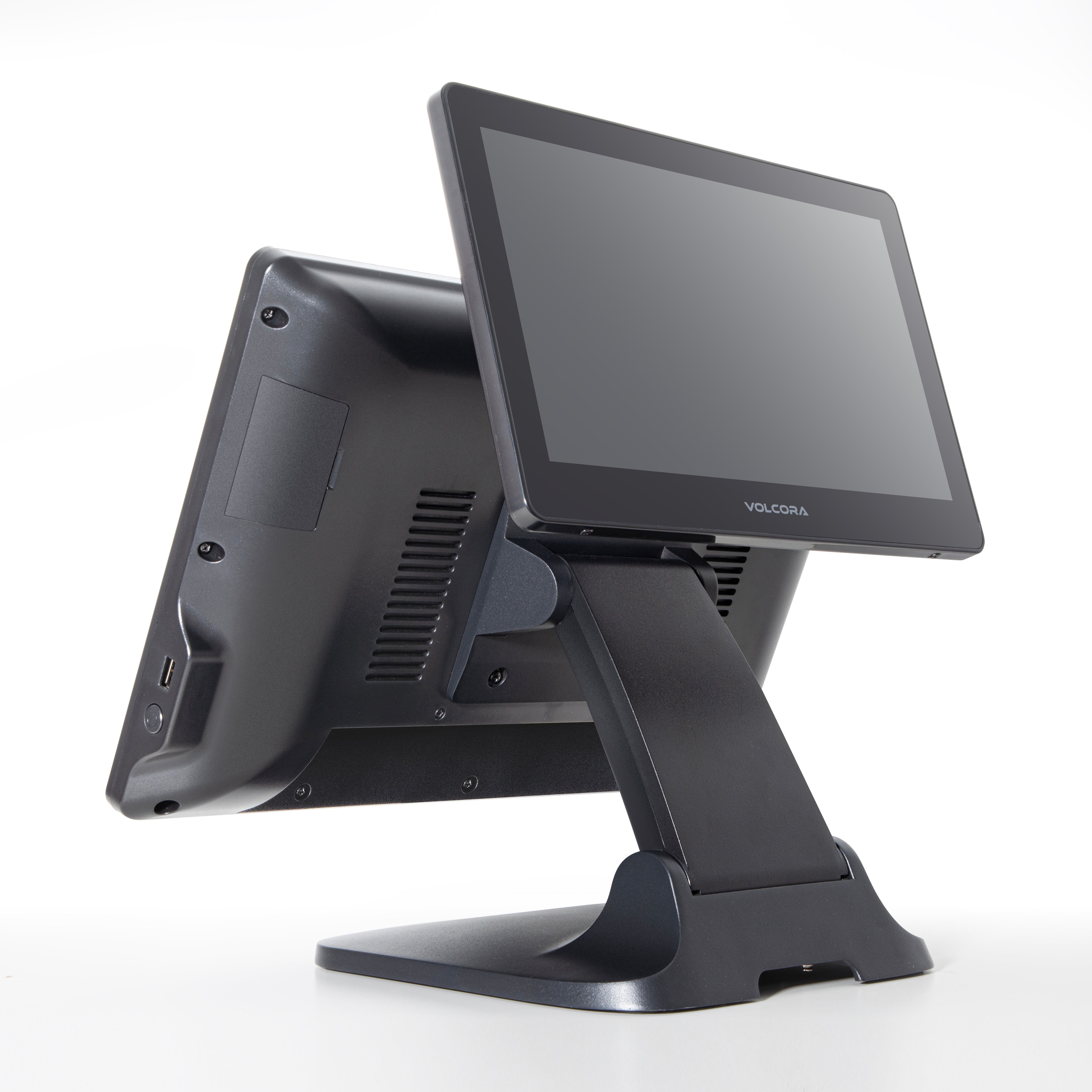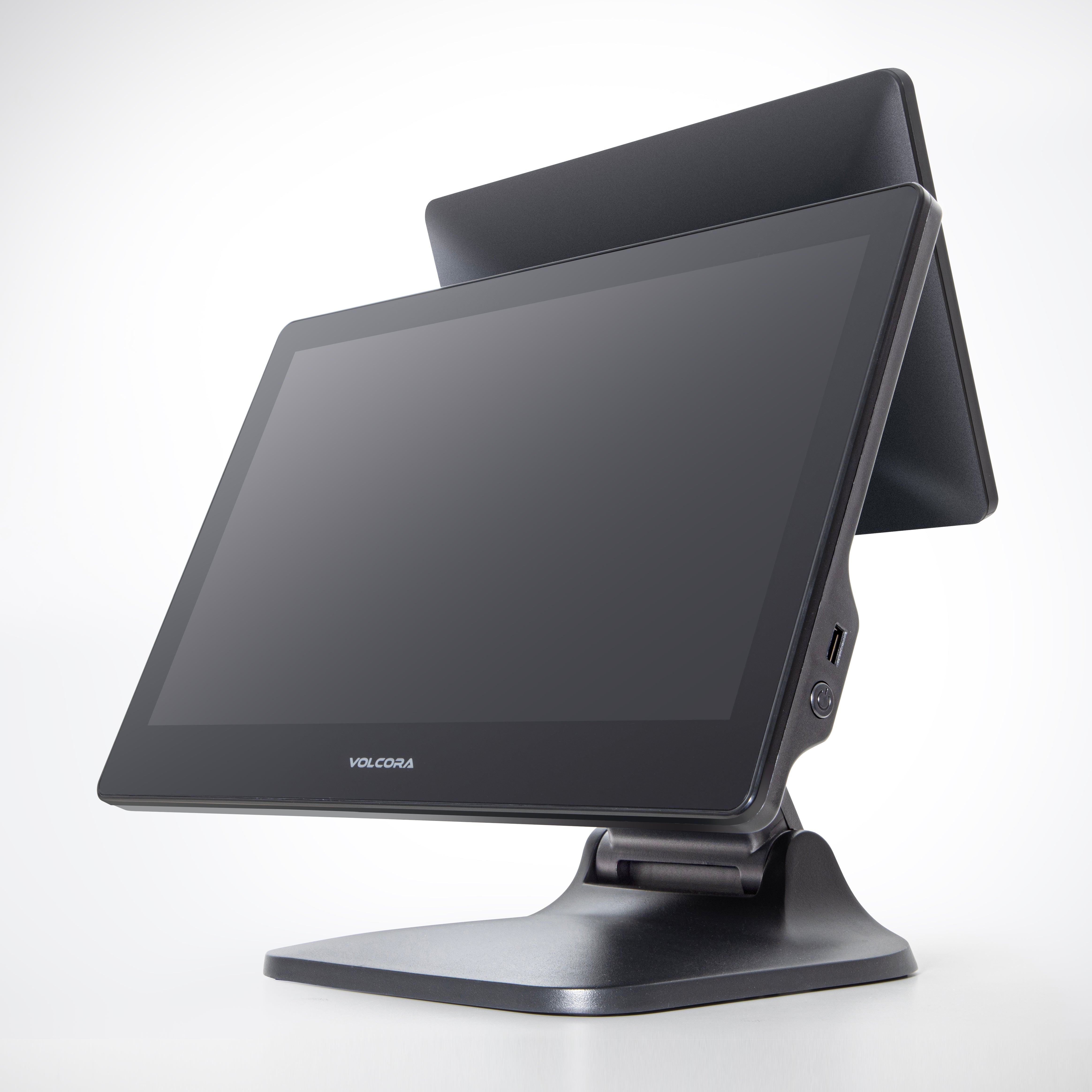 WIDE TOUCHSCREEN OPTIONS – Available in both single-screen and dual-screen configurations, the Volcora POS Terminal features a 15.6" capacitive LCD touchscreen with a 1920x1080 high-resolution display for crisp, effortless viewing and interaction. The dual-screen model adds an 11.6" customer-facing capacitive LCD touchscreen with a 1366x768 resolution, perfect for order confirmation, advertising, or customer engagement. All displays are engineered to withstand over 15,000 hours of use with minimal quality loss.