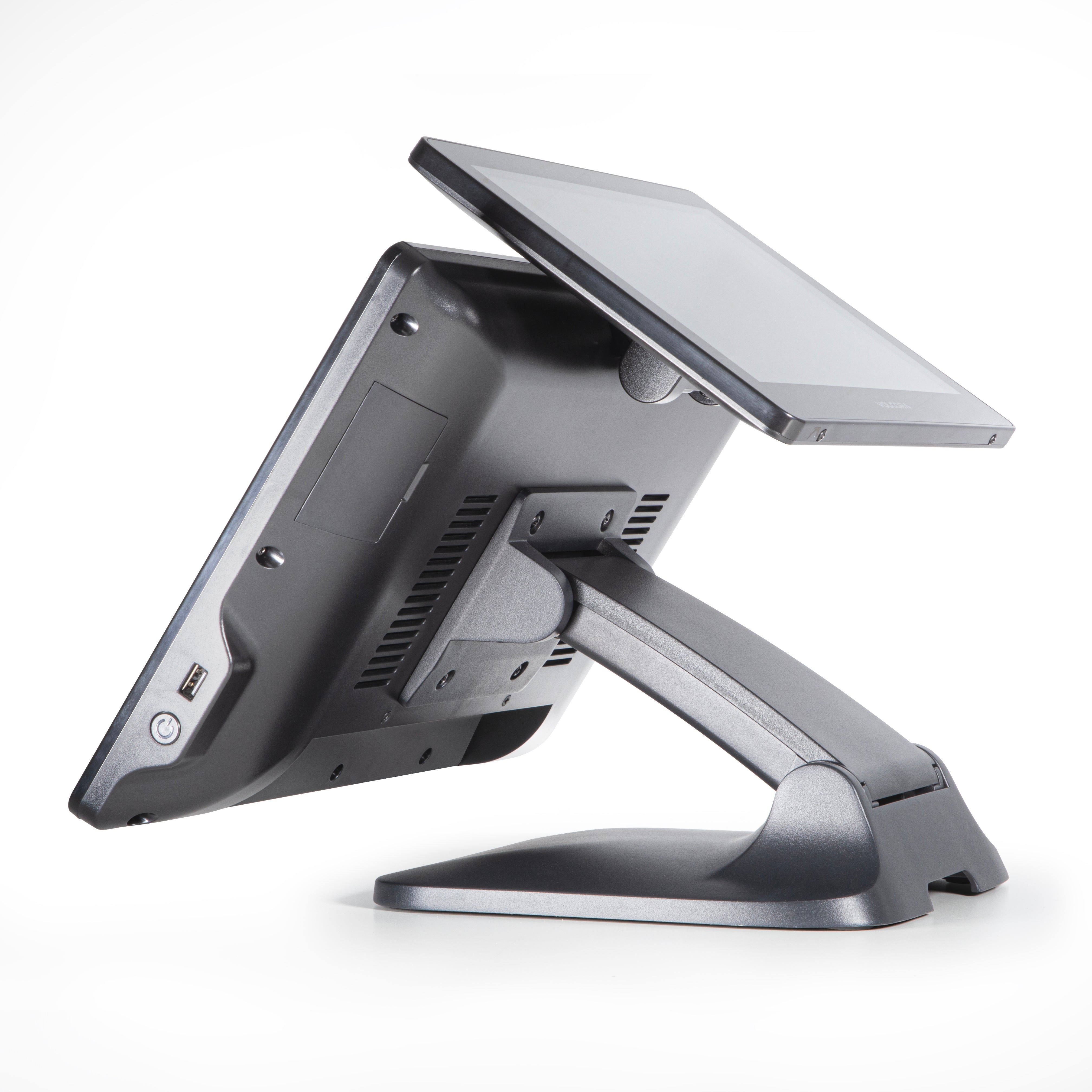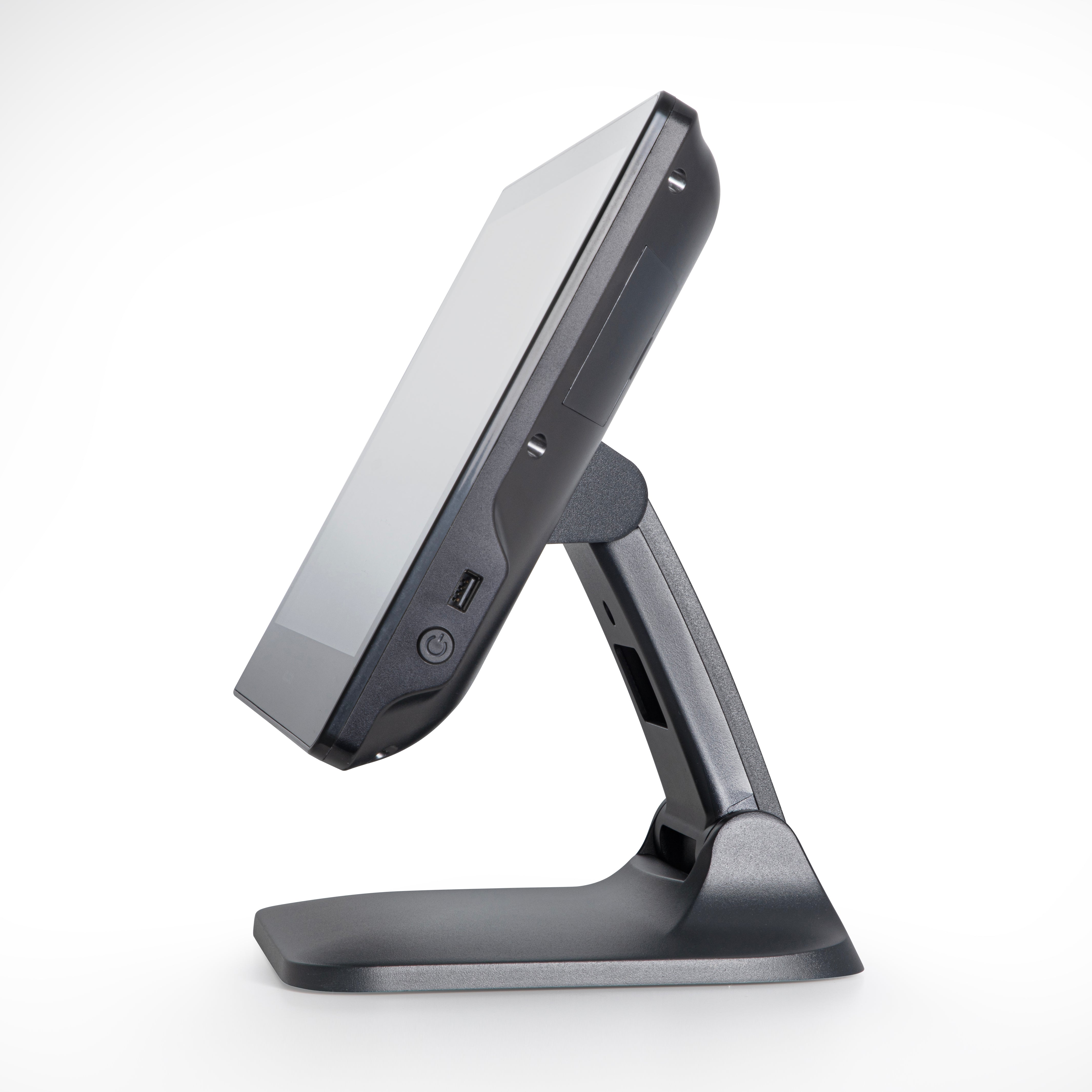 DUAL-HINGE FOLDABLE DESIGN – Built with a flexible dual-hinge mechanism, the terminal allows easy height adjustment and fold-down positioning for space-saving storage or optimal viewing angles. Perfect for tight countertops, low-profile setups, or businesses needing ergonomic flexibility.
