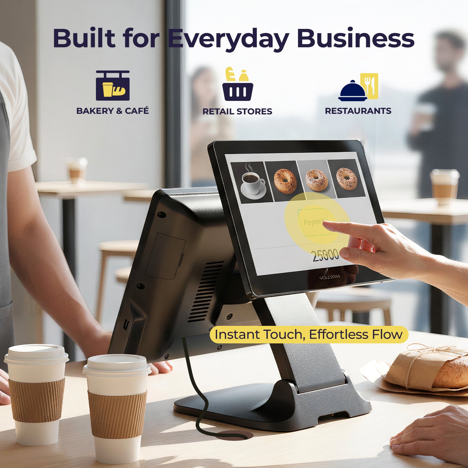 COMMERCIAL & RETAIL READY - Volcora POS Terminal Cash Register is designed to take up as little space as possible so you can focus on better utilization of the counter space. Our sleek yet heavy-duty metal base ensures the terminal is well-stabled while taking orders with style. Suitable for any business such as retail stores, quick service restaurants, dine-in restaurants, cafes, bars, and more.
