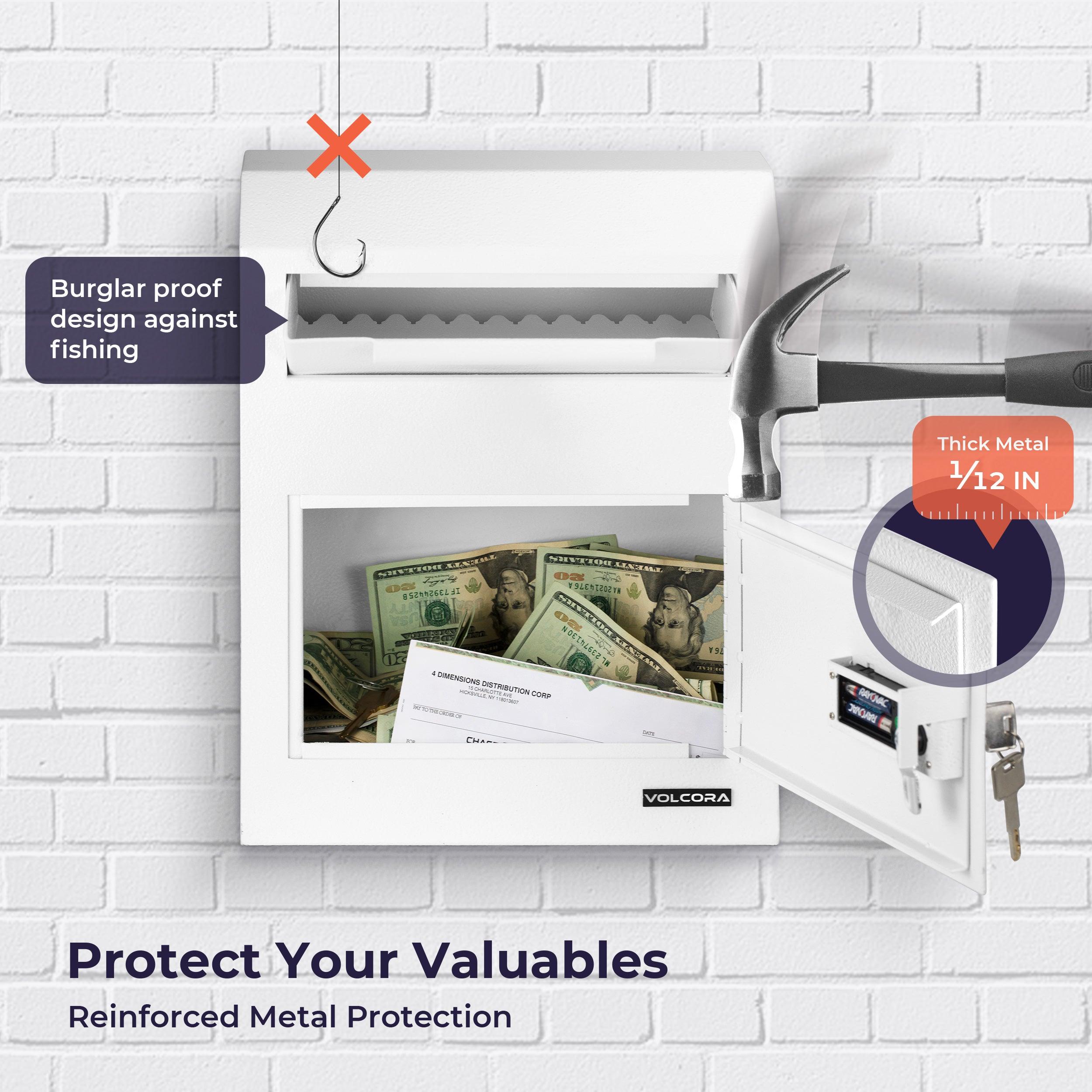 HIGH-QUALITY DROP SAFE BOX: Volcora's top quality durable wall-mounted drop box with a lock for business is perfect for indoors in an office, shops, automotive, convenience stores, and various functions